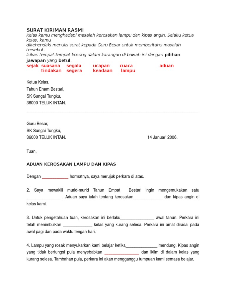 Surat Kiriman Rasmi Memohon Menggunakan Dewan Pdf